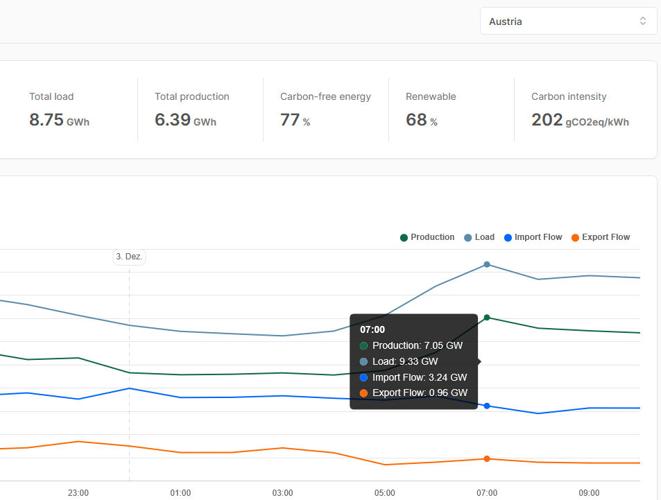 In Electricity Maps ist genau beschrieben, woher die Daten kommen: https://help.electricitymaps.com/en/articles/10825433-how-do-you-get-your-data