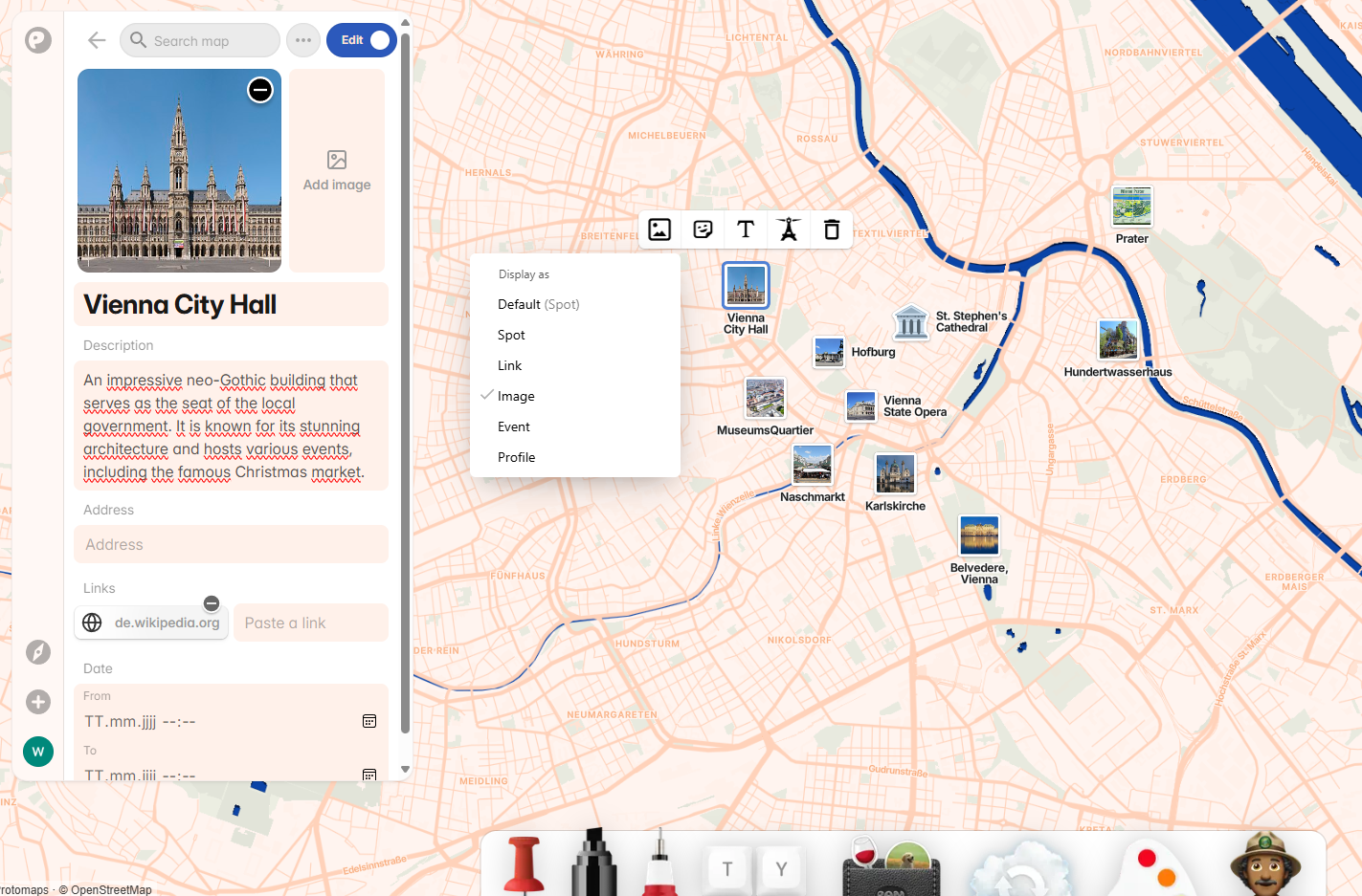 Geben Sie auf der Startseite ein, welche Karte Sie erstellen möchten (Beispiel: Sehenswürdigkeiten von Wien).